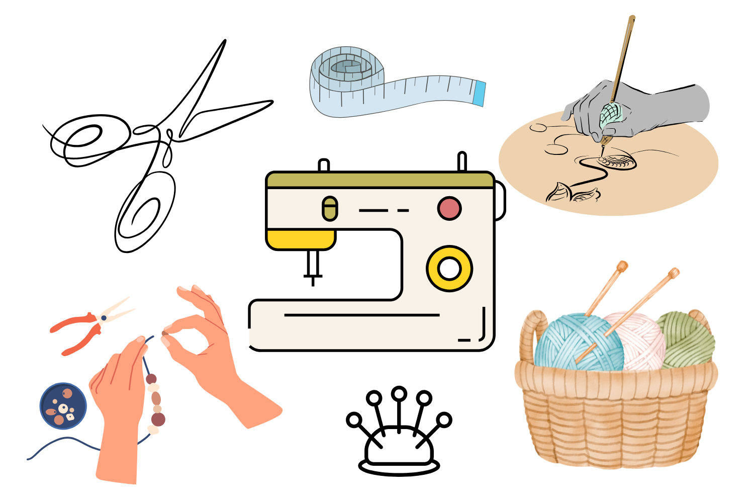 Ompelimo, tekstiilipaino, brodeerauksien tekijä, korujen valmistaja, laserkaivertaja, värjääjä..
