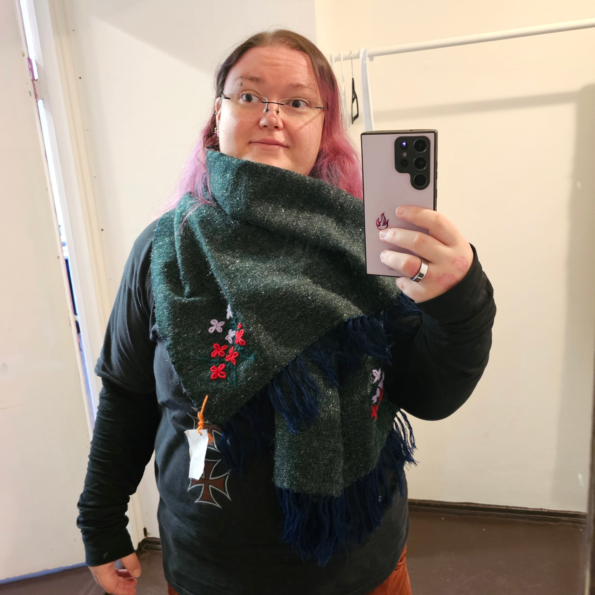 Vihreä kimalteleva hartiahuivi / kaulaliina